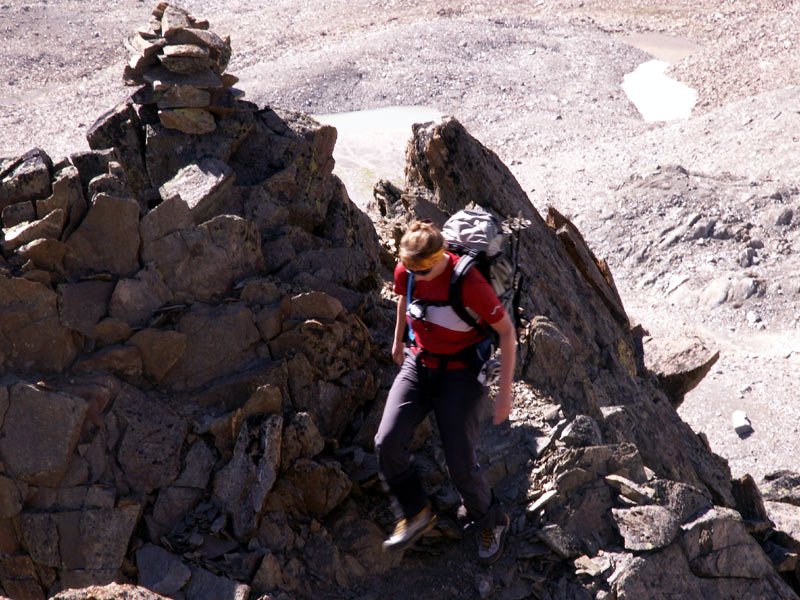 Schutt und leichte Blockkletterei am Südgrat