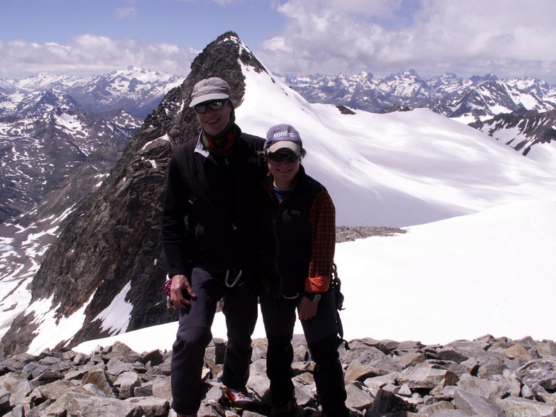 Am Gipfel mit Blick auf Sonklarspitze und Wildspitze.