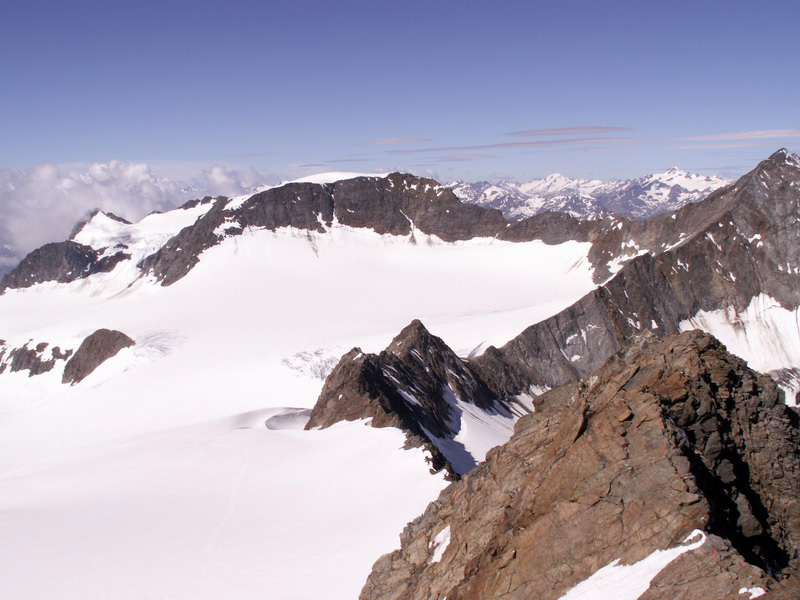 Blick zum Wilden Pfaff, 3458 m. Der Grat links führt zur M6uuml;llerhütte.
