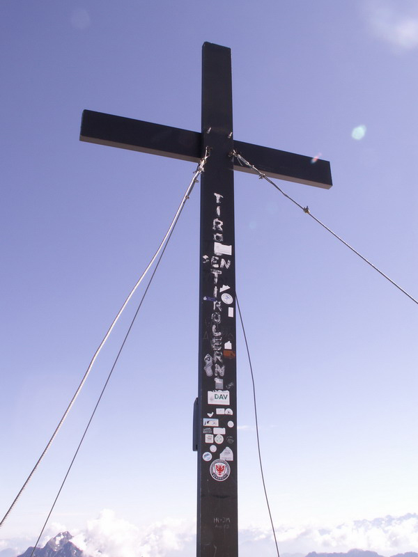 Leider öfter zu sehen - Schmierfinken haben das Gipfelkreuz verschandelt.